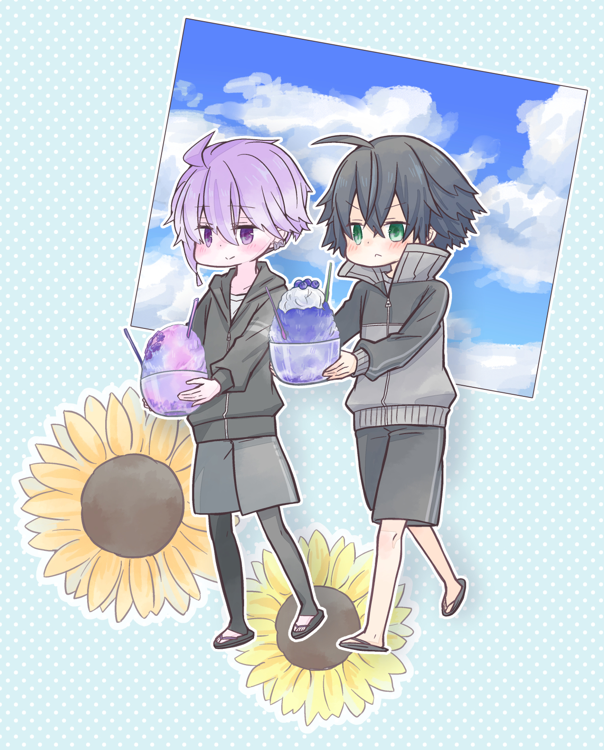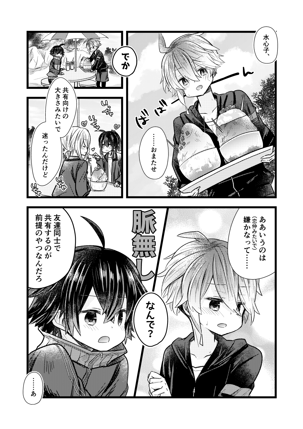 コピ本裏表紙 花丸映画で観た水着がかわいいな~と思って夏っぽいなんかを描いたらかき氷がクソデカになってしまい、やべっクソデカじゃんと思ってたら思いついた話です(いきあたりばったりか????)